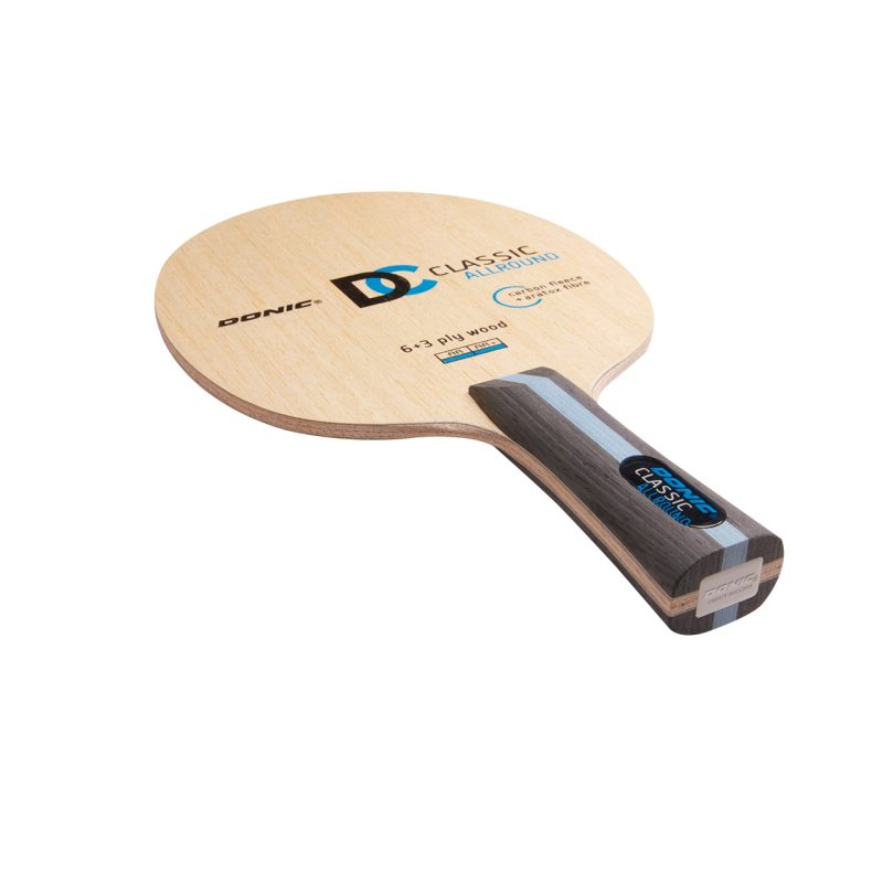 Déjà, le noyau du DONIC CLASSIC ALLROUND nous montre à quel point les matériaux modernes se distinguent de ceux des générations précédentes. La fibre ARATOX intégrée est plutôt une couche collante qu’un placage au sens traditionnel du terme et elle n’est pas comparable aux couches de carbone classiques utilisé par la passé. L’intégration de bois comme le Limba et le Koto, mais surtout la combinaison harmonieuse de tous les matériaux, donnent un résultat qui transmet à la fois le meilleur contrôle possible, la vitesse requise et le toucher attendu.
