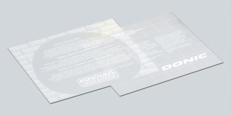 La feuille de protection FORMULA protège votre revêtement de tennis de table de la poussière, de l’oxydation à l’air et d’une altération prématurée. L’adhérence et les qualités de jeu du revêtement durent plus longtemps. Une bonne adhérence est due aux qualités légèrement autocollantes de la feuille sur votre revêtement. Nettoyez la surface du revêtement (par exemple, avec un nettoyant de revêtement DONIC), avant d’apposer la feuille de protection.