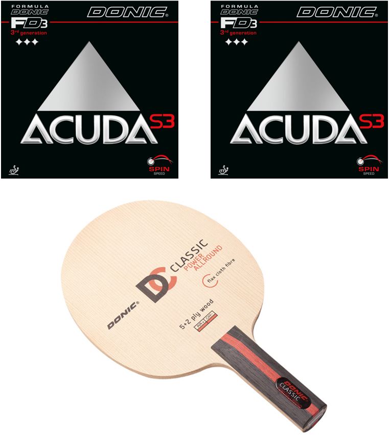 Bois DONIC Classic PowerAllround concave + revêtement DONIC Acuda S3 2mm