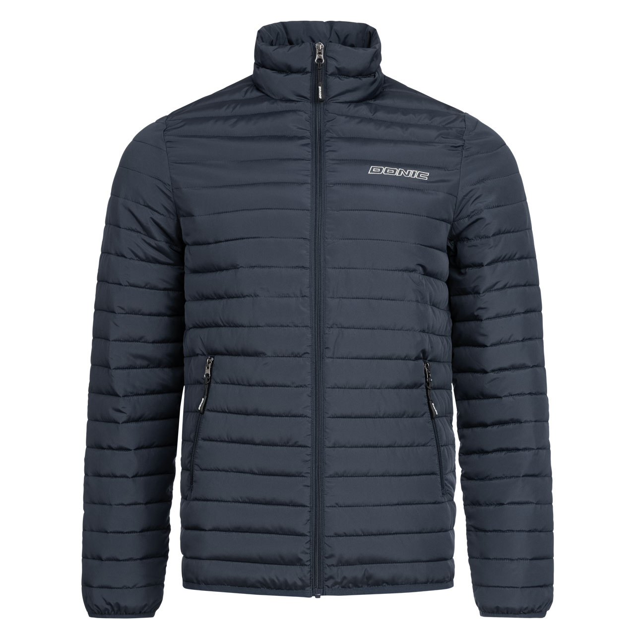 Une veste piquée, chaude, légère et imperméable. Deux poches latérales zippées. 100% Polyester Marine XXS – 3XL